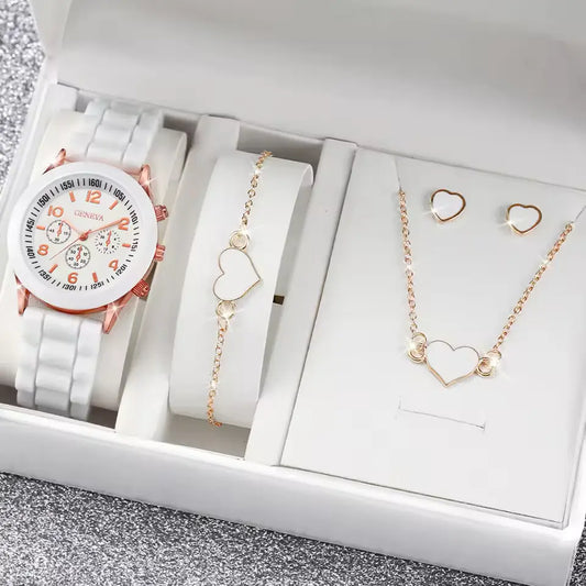 4PCS Women’s Watch & Heart Jewelry Set – Chic & Trendy