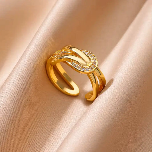Elegant Gold Knot Adjustable Ring – Stylish Stainless Steel Jewelry